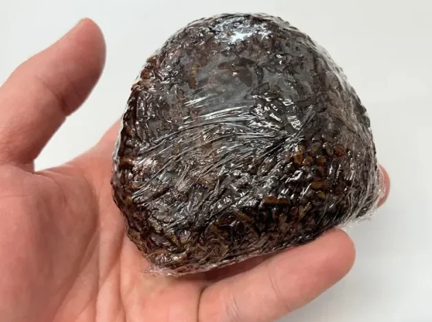 Тому ці онігірі темні за кольором, а не білі, як завжди. Їх не обертають у водорості як завжди, а обмазують зовнішнім шаром мисо.