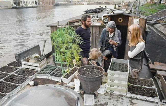 Продавець саджанців конопель на своєму човні. Канал Оостербургерграхт, Амстердам, 1971 рік.