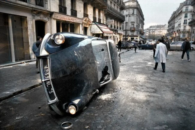 Розбитий автомобіль Citroen, паризькі заворушення, травень 1968 року