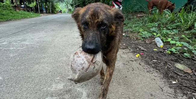 "Я годую 80 вуличних собак щоранку в Таїланді, і хоча всі вони вдячні, один собака перевершив усі сподівання у своїй вдячності. Її звуть Снікерс, і щодня вона обов'язково приносить мені подарунок. Як тільки вона почує, що наближається велосипед, то знайде щось приємне, щоб принести мені», – розповідає Харбісон.