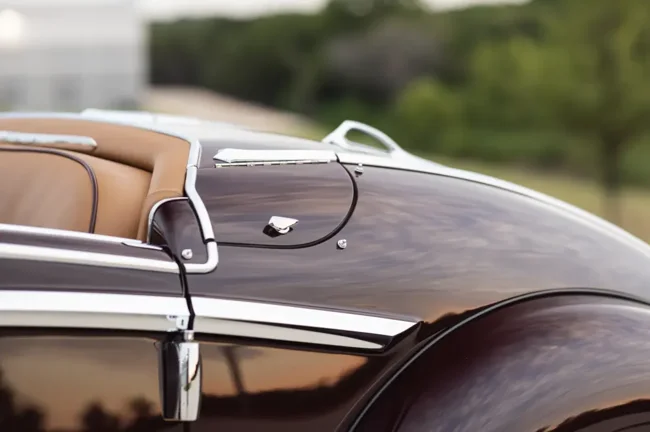 Тут у період до 2018 року йшла поглиблена реставрація раритету, в ході якої його забезпечили кузовом типу Special Roadster з характерним подовженим заднім звисом та запасним колесом, розміщеним не на крилі, а під кузовними панелями корми. Крім того, автомобіль із чотиримісного перетворився на двомісний.