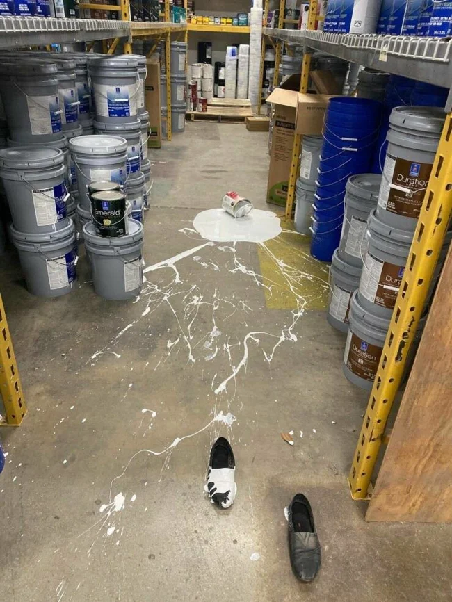 9. Хтось упустив фарбу в магазині, і втік без черевиків