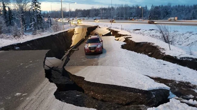 Внаслідок землетрусу у 2018 році, магнітудою 7 балів в Анкориджі на Алясці було пошкоджено дороги, а також безліч будівель та будинків. Сильно постраждала інфраструктура міста, закрито багато дорог і мостів.