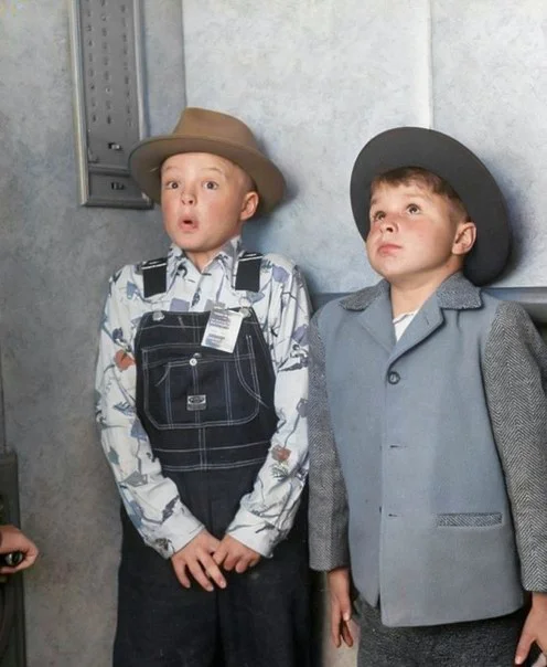 Сільські діти Кемп Севідж та його двоюрідний брат Брюс, зображені на фотографії, прибувають у столичний Солт-Лейк Сіті у складі делегації школярів з дуже маленького та далекого міста Сурма.