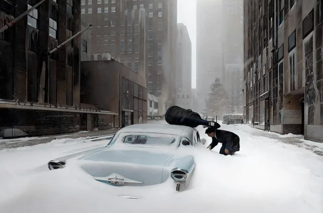 Французький віолончеліст Моріс Баке намагається відкопати свій занесений снігом автомобіль 01 січня 1960 року у Нью-Йорку.
