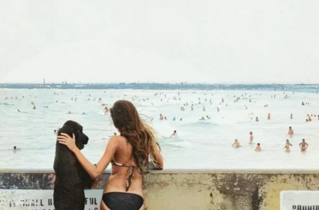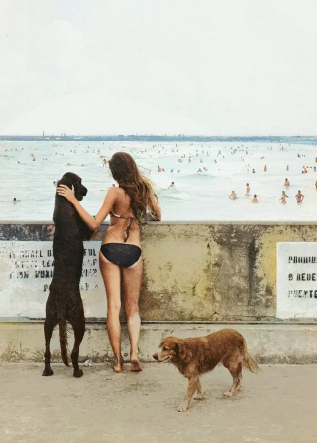 Дівчина і собаки на Майамі пляж. США, 1977 рік.