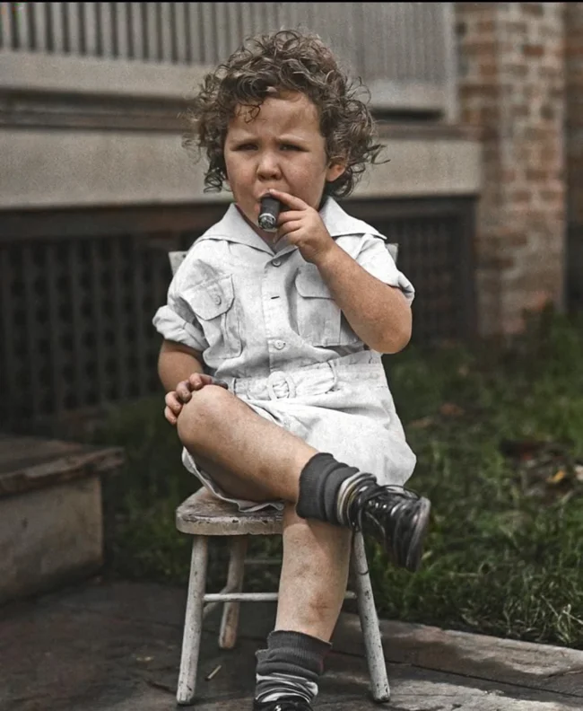Трирічний Роберт Куіглі палить сигару, 1928 рік.