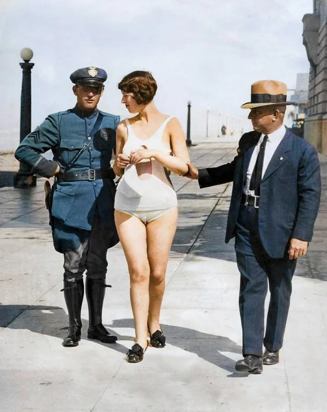 Арешт дівчини за появу на пляжі в надто відвертому купальнику. США, 1920-ті роки.