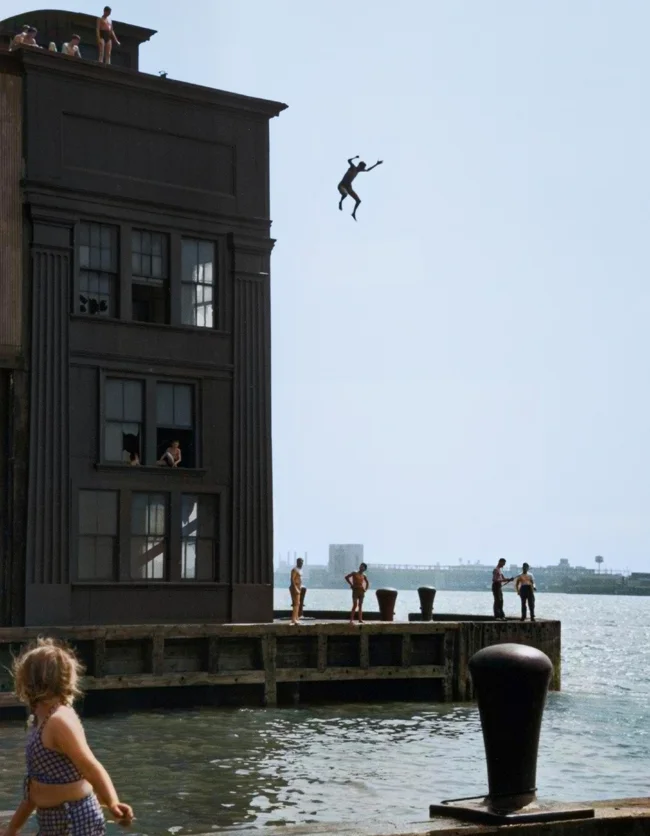 Хлопчик стрибає з даху в річці Гудзон. Нью-Йорк, США. Літо 1948 року.