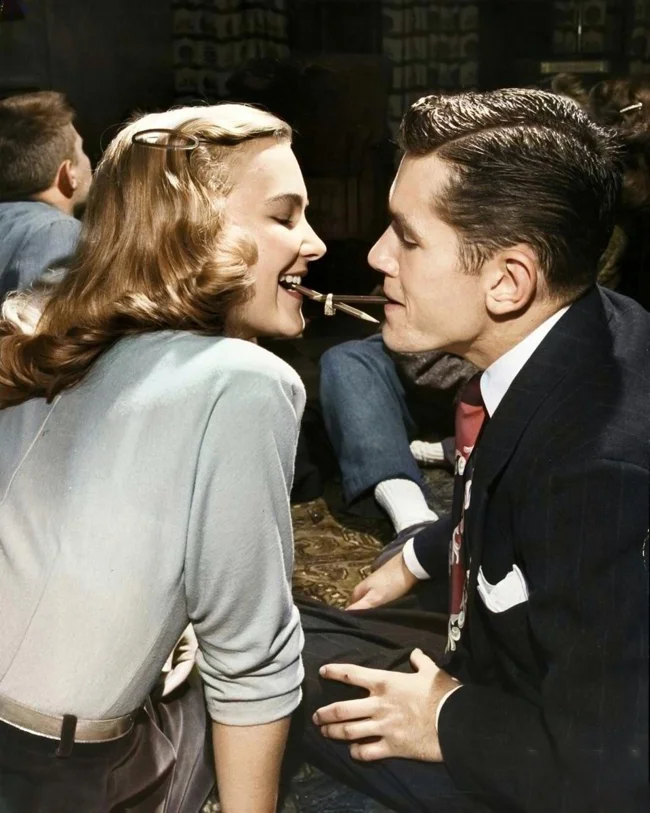 Популярна молодіжна гра 40-х років, метою якої було передати обручку партнеру лише за допомогою затисненого в зубах олівця. США, 1947 рік.