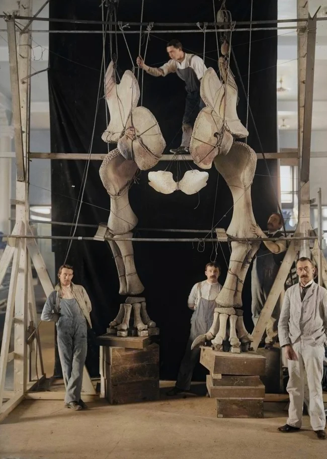 Співробітники музею збирають динозавра, США, 1904 рік.