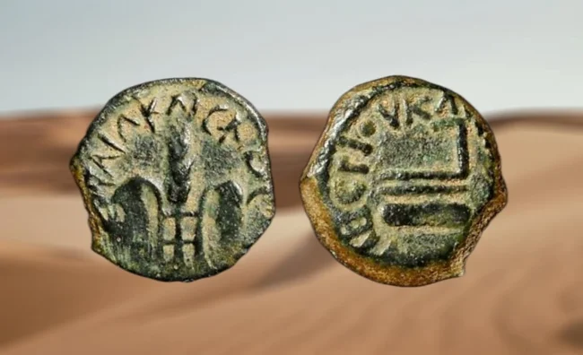 Бронзова монета Понтія Пілата, префекта Юдеї за римського імператора Тіберії.