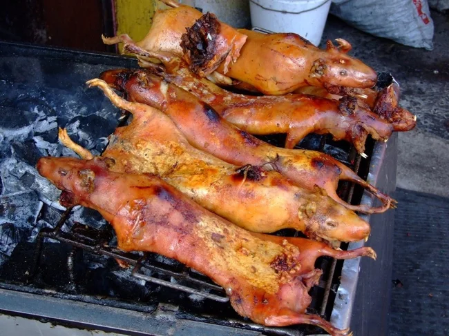 Їх подають у Південній Америці. Вони можуть бути смаженими або приготованими на грилі, а на смак нагадують поєднання свинини, кролика і, можливо, приправлені сльозами дитячих спогадів про улюблених домашніх тварин.
