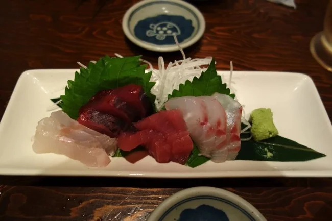 Національна японська страва. Являє собою шматочки свіжої сирої риби або м'яса, нарізані тонкими скибочками. Часто вживається із соєвим соусом.