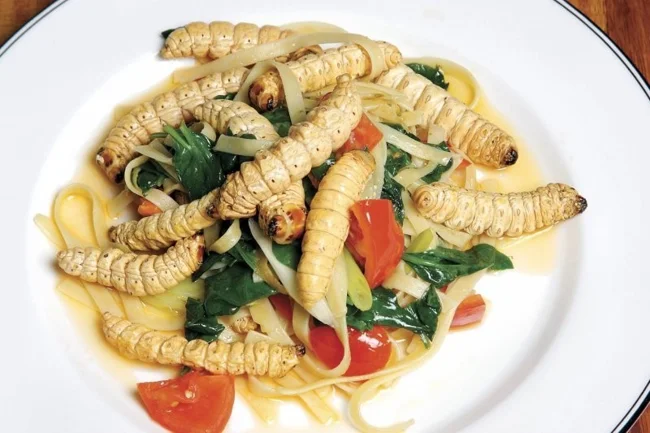 Ця страва популярна у центральній Австралії. Воно готується з білих личинок метелика, які живуть у деревній корі та харчуються нею.