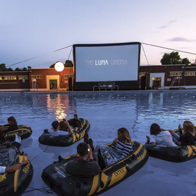 12. Романтична обстановка забезпечена. Перегляд фільму, хитаючись на воді в маленьких надувних човнах