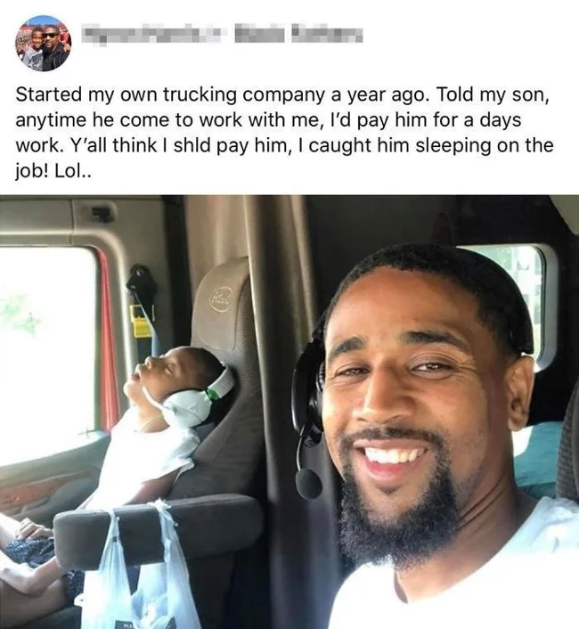20. «Рік тому я заснував власну вантажну компанію. Сказав синові, що платитиму йому за дні, відпрацьовані зі мною. Знайшов його сплячим на посту, як думаєте, чи варто йому платити?»