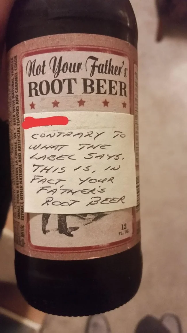 Стикер: «Всупереч тому, що сказано на етикеті, це насправді рутбір твого батька»