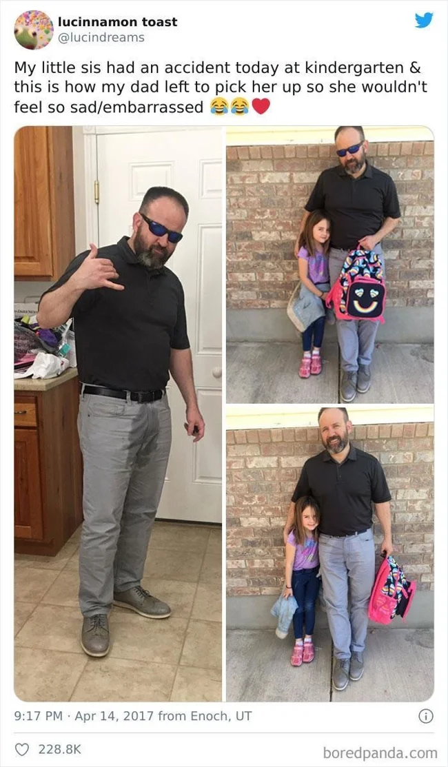 17. «Сестричка обмочила штани, поки була в садку, і ось у якому вигляді приїхав за нею тато, щоб їй не було так сумно та соромно»