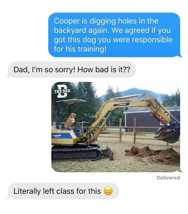 - Купер знову копає ями у дворі. Ми домовлялися, що якщо ти заведеш собаку, ти будеш відповідати за її виховання!