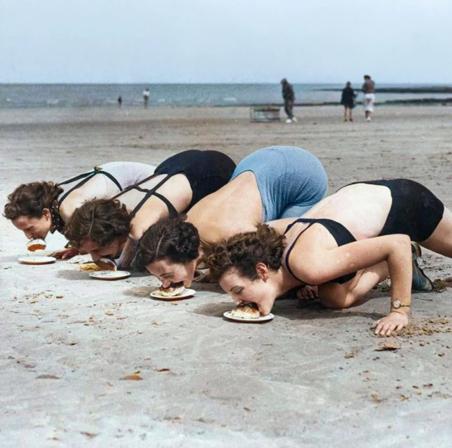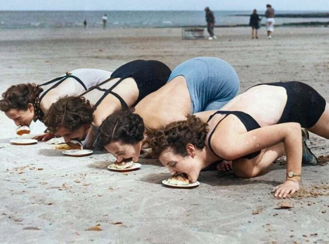 Змагання з поїдання пирога без допомоги рук, 1937 рік. ![]()