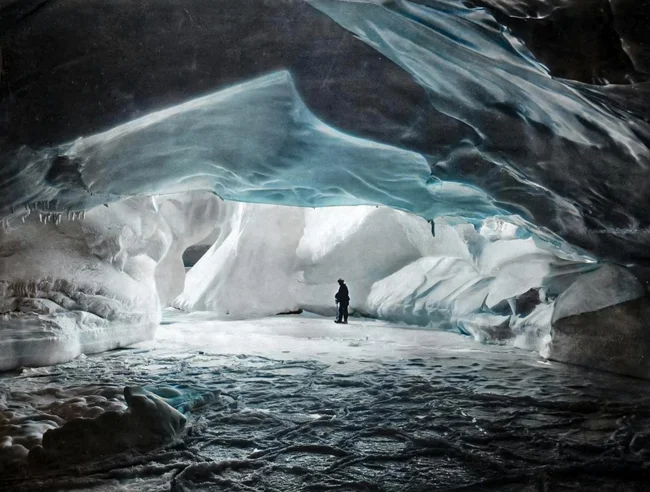 Печера на березі моря Співдружності у крижаній стіні.