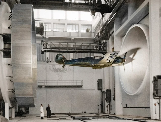 Випробування винищувача Мессершмітт BF.109 у Великій аеродинамічній трубі у Берліні.