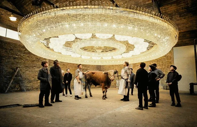 На фабриці не було такого приміщення, щоб зібрати гігантську люстру. Тому ухвалили рішення збирати неподалік, на скотобійні.