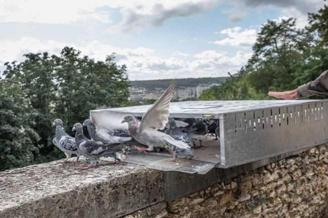 "Ми починаємо з коротких тренувальних польотів на майданчику, потім відходимо все далі і далі від голубника", - пояснює Сільвен. Залежно від тренування птахів випускають індивідуально або групами, і їм належить знайти дорогу додому. Таким чином, молоді птахи поступово розвивають необхідні м'язи і набувають досвіду польоту.