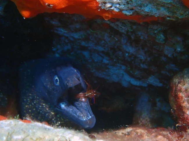 Єдиний, хто товаришує з агресивним самітником — середземноморська креветка. Вона живе прямо на тілі мурени, зчищаючи з її шкіри паразитів та залишки їжі. На подяку морська бестія дарує дах і захист.