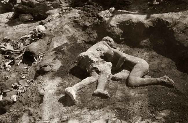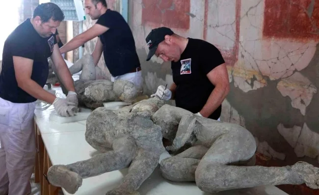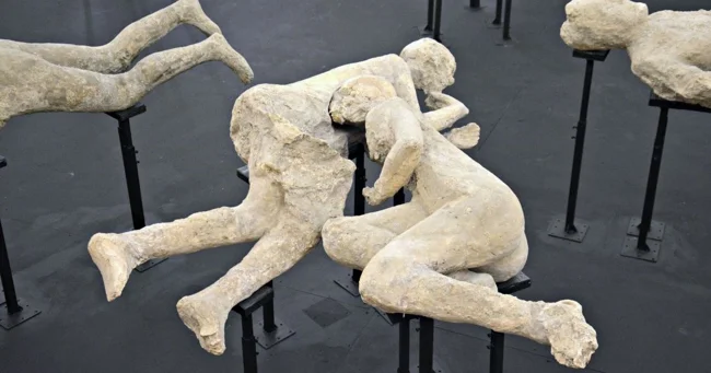 Помпеї - давньоримське місто, поховане під шаром попелу після виверження Везувію в 79 році нашої ери. Місто відкрили наново у 1700-х роках, коли дослідники виявили десятки загиблих. Тіла жертв зотліли за тисячоліття, але їхні обриси залишилися недоторканими. Вчені змогли відновити їх, заповнивши гіпсом порожнини. Це також дозволило зберегти ДНК древніх жителів.