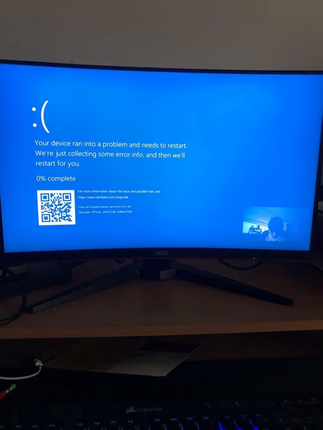 "Мій комп'ютер видав синій екран, але в нижній частині з'явилося чиєсь зображення, зняте на веб-камеру"