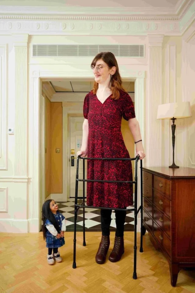 Отак зустріч! Найвища та найнижча жінки у світі побачилися на чаюванні у День рекордів Гіннеса у лондонському готелі Savoy. Румейса Гелгі, зростання якої становить 2 метри 15 сантиметрів, відома як найвища жінка у світі. Джоті Амджі зі зростанням 62 сантиметри вважається найнижчою.