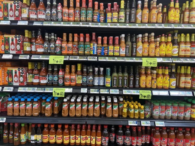 Класика. Вибір гострих соусів у місцевому супермаркеті