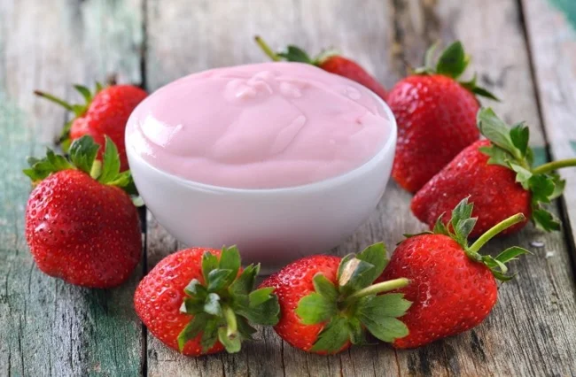 Полуничний йогурт нерідко забарвлюють у червоний колір карміном - речовиною, яку одержують із подрібнених жуків - самок кошанільного червця (Dactylopius coccus) - комахи із загону напівжорсткокрилих.