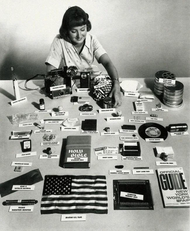 7. Різні предмети з капсули часу компанії Westinghouse, створеної для Всесвітньої виставки у Нью-Йорку у 1964-1965 роках.