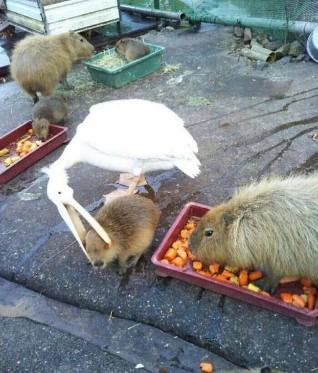 11. Нічого незвичайного, просто пелікан пробує чи зможе він з'їсти капібару