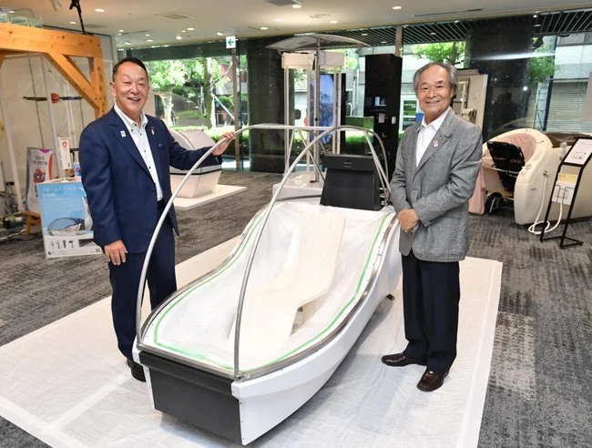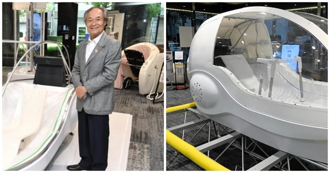 І ось на виставці Osaka Kansai Expo хлопці представили публіці допрацьовану модель прання для людей. Людська пральна машина має форму кабіни винищувача. Вона навіть має прозору кришку, яка відкривається назад.