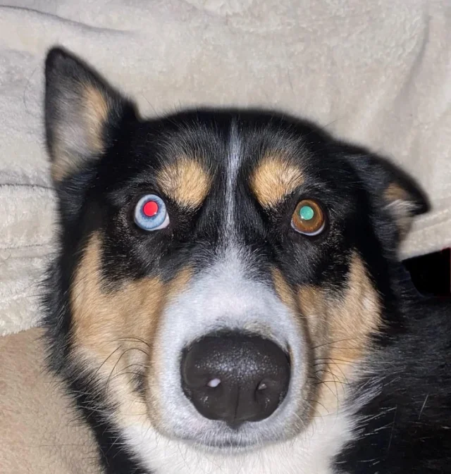 У собаки з гетерохромією зіниці при світлі відбиваються по-різному