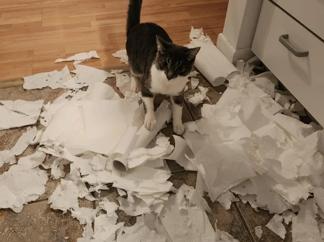 Іноді реалізація творчого потенціалу призводить до невеликих руйнувань. Але це дрібниці на шляху розкриття таланту. Котики – найартисніші домашні тварини. Але тільки якщо самі того захочуть.