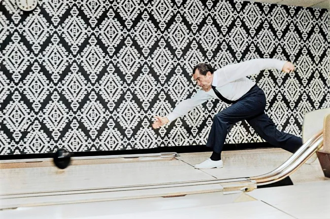 Президент Річард Ніксон грає в боулінг у Білому домі. Можливо, був не найкращий час для фотосесії, у нього воїна у В'єтнамі, протест афроамериканців, а він час знайшов пограти.
