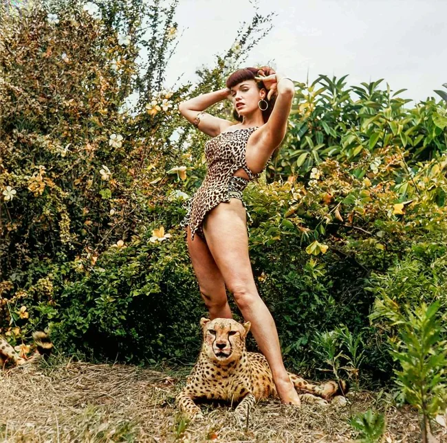 Фотомодель та секс-символ 1950-х років Бетті Пейдж та гепард. 1954 рік.