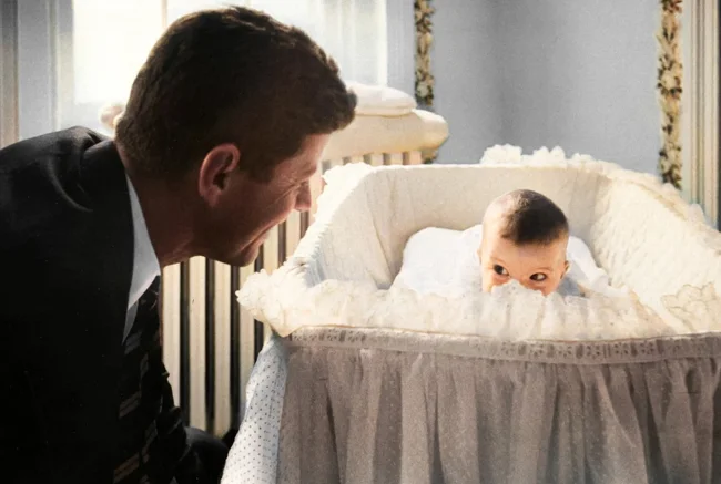 Джон Кеннеді грає у хованки зі своєю дочкою Керролайн, 1958 рік.