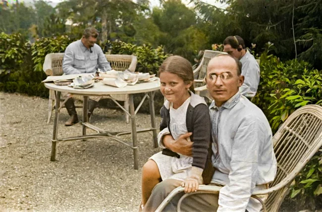 Сталін, його дочка Світлана та Лаврентій Берія на підмосковній дачі, 1935 рік.
