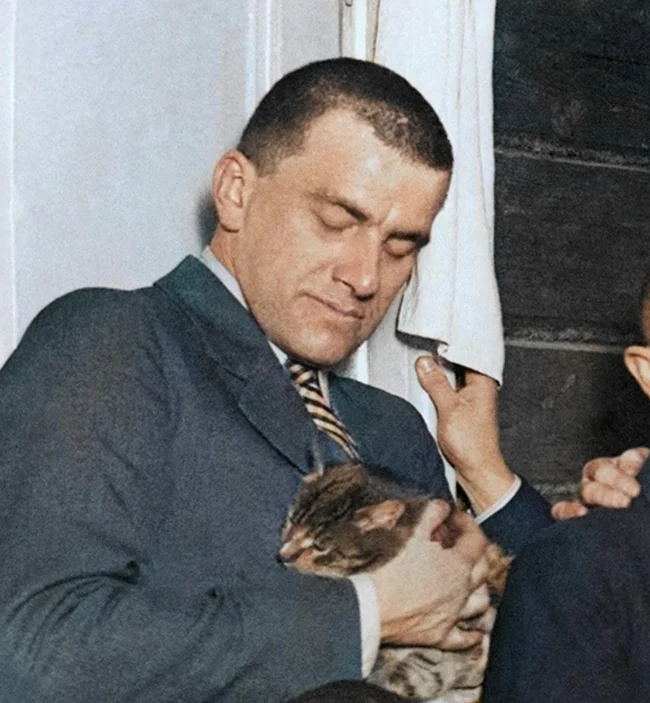 Мила фотографія з пухнастим другом була зроблена на квартирі у Сокільниках, після повернення В.В. Маяковського з поїздки до США. Це маленька частина групової фотографії, яка свого часу облетіла інтернет. Повну фотографію викладу у коментарях.
