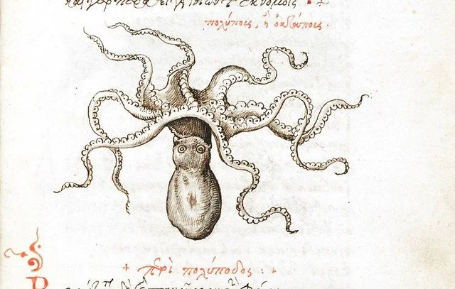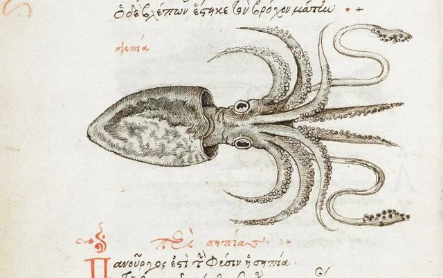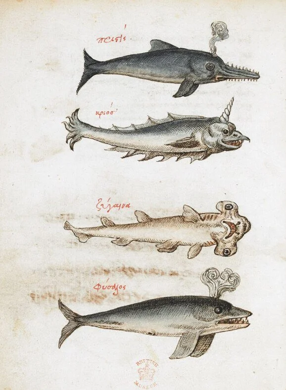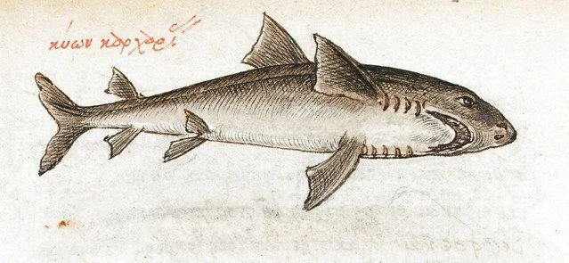 Це ілюстрації з копії 16 століття рукопису «Про властивості тварин» Мануїла Філа (бл. 1275 — бл. 1345). Вважається, що всі мініатюри рукопису, включаючи риби, виконані жінкою. Безіменною дочкою переписувача та каліграфа Анжа Вержеса.