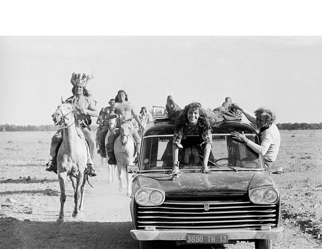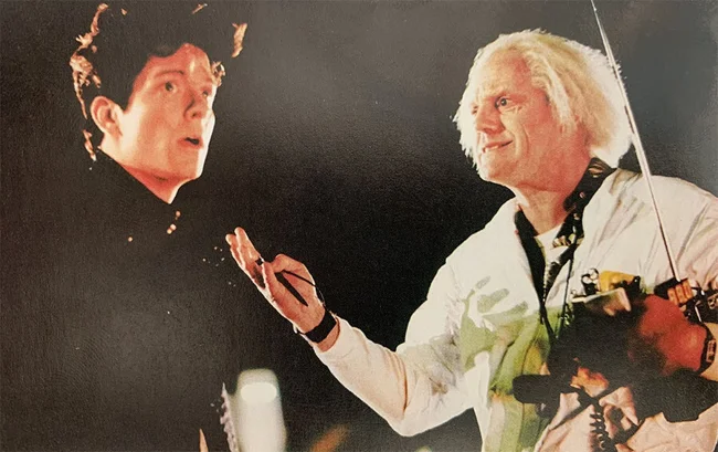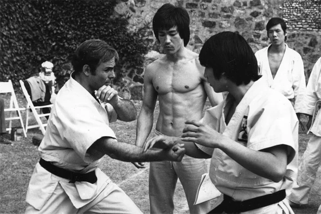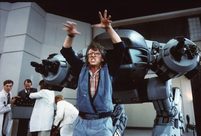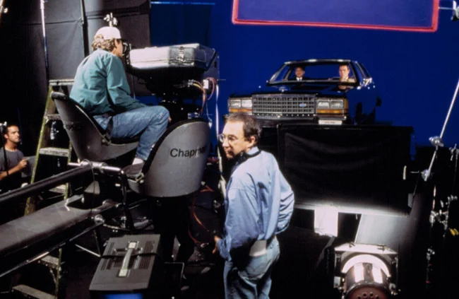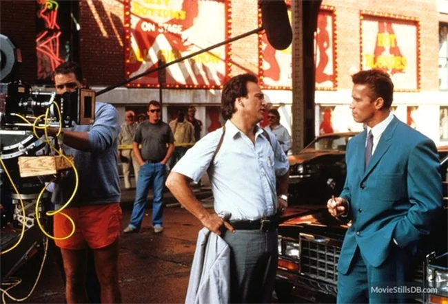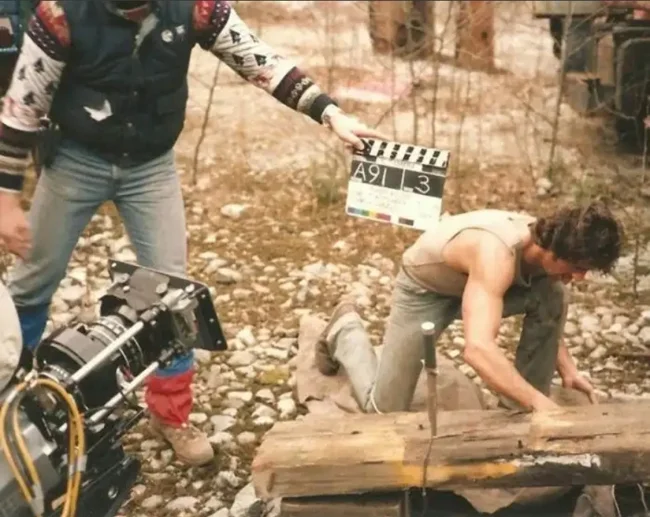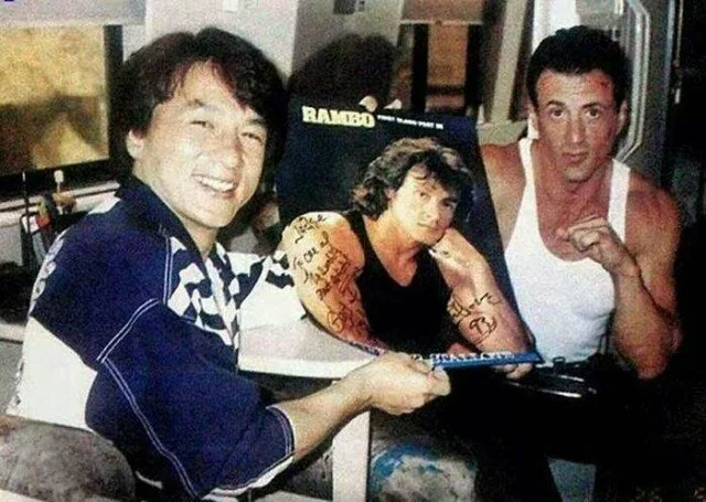 Джекі Чан бере автограф у С. Сталлоне під час зйомок фільму "Руйнувач", 1993 р
