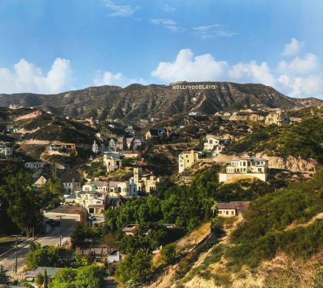 "Голлівудленд". США. 1920-ті роки. Відомий усьому світу знак на Голлівудських пагорбах був встановлений у 1923 році і спочатку мав напис "Hollywoodland". У 1939 році Торгова палата Голлівуду викупила його і з назви зникло слово land, а "Hollywood" став символом кіноіндустрії, що зароджується.