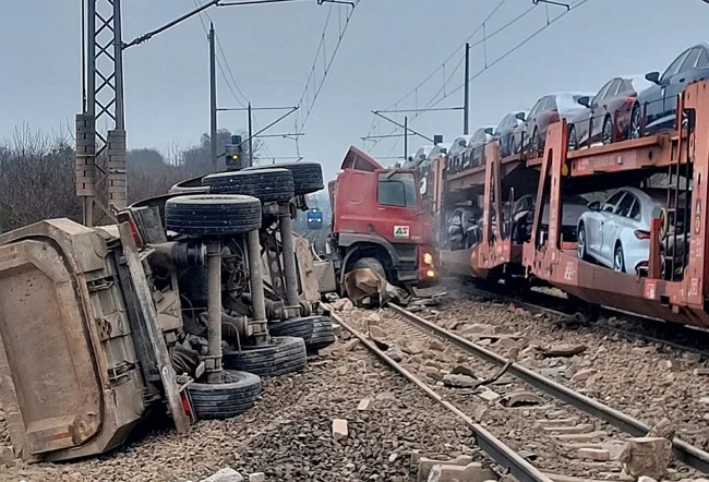У Німеччині і так криза автопрому, а тут ще й зіткнення поїзда, який перевозив нові автомобілі з вантажівкою, завантаженою каменями.