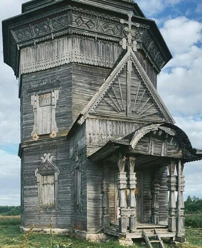 6. Стародавня дерев'яна православна Стрітенсько-Михайлівська церква, побудована в 1655 році в покинутому селі Червоній Лязі, в Каргопільському районі Архангельської області
